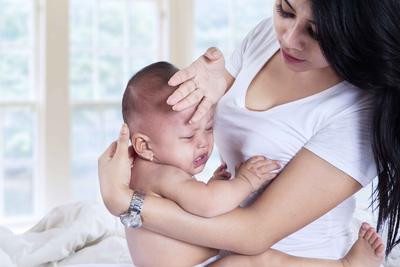 臉色潮紅、易發脾氣、沒有胃口、頭發濕、長痱子。寶寶可能是坐在太陽下、關著門的車里、溫暖的房間或穿得太厚了。